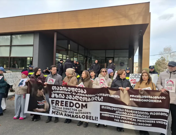 პროკურატურასთან მზია ამაღლობელის გათავისუფლების მოთხოვნით, მედიის წარმომადგენლები აქციას მართავენ
