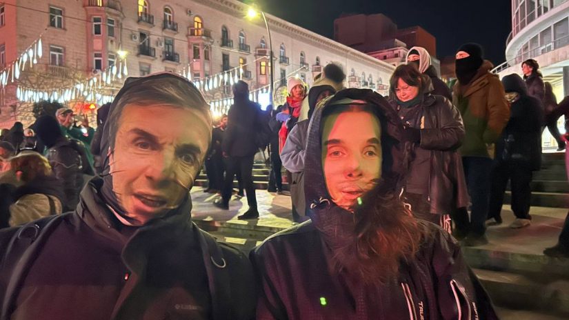 აქცია თბილისში ბიძინა ივანიშვილის გამოსახულებიანი ნიღბებით