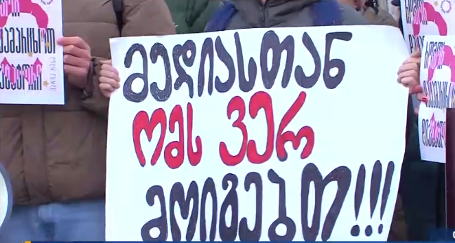 შსს-ს წინ საპროტესტო აქციაზე ჟურნალისტებმა მოითხოვეს, შეუჩერდეს პოლიციის მაღალჩინოსან დგებუაძეს უფლებამოსილება