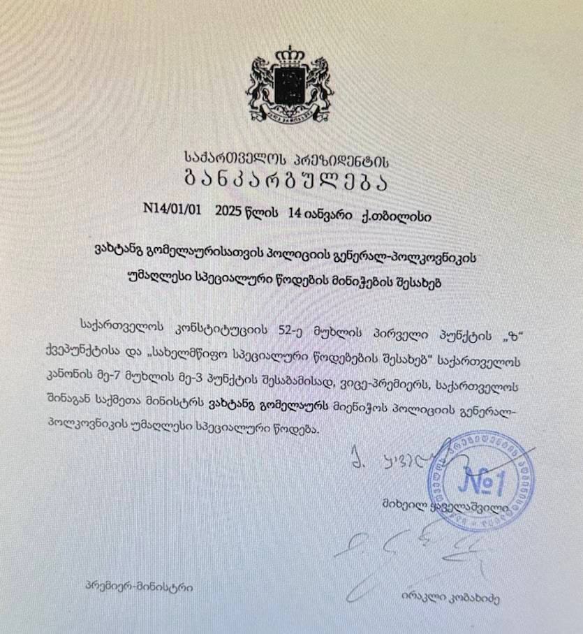 მიხეილ ყაველაშვილმა შსს მინისტრს გენერალ - პოლკოვნიკის წოდება მიანიჭა