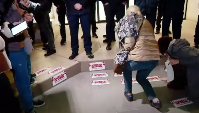 რესტორანთან სადაც მოსამართლეები წვეულებას მართავენ პროტესტი გრძელდება