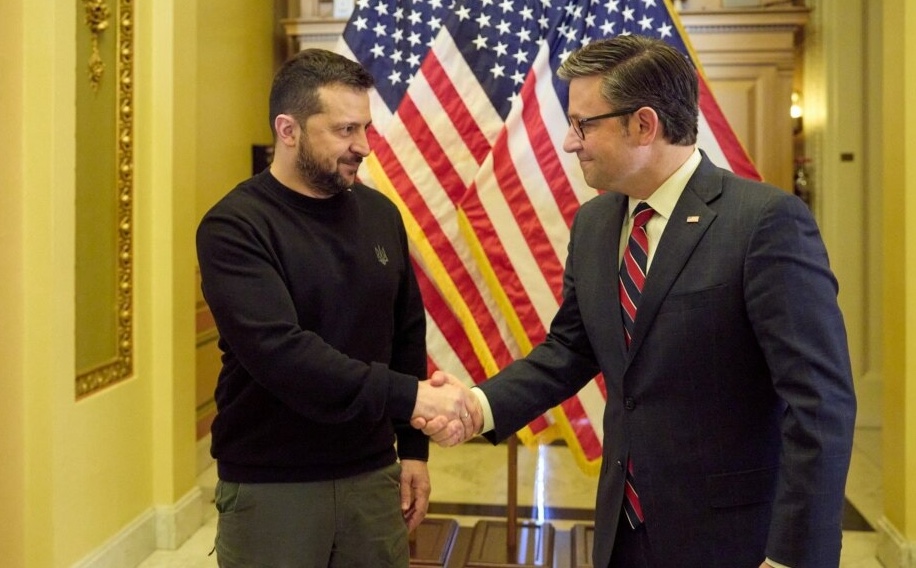 ვოლოდიმირ ზელენსკი მაიკ ჯონსონს აშშ-ის წარმომადგენელთა პალატის სპიკერად არჩევას ულოცავს