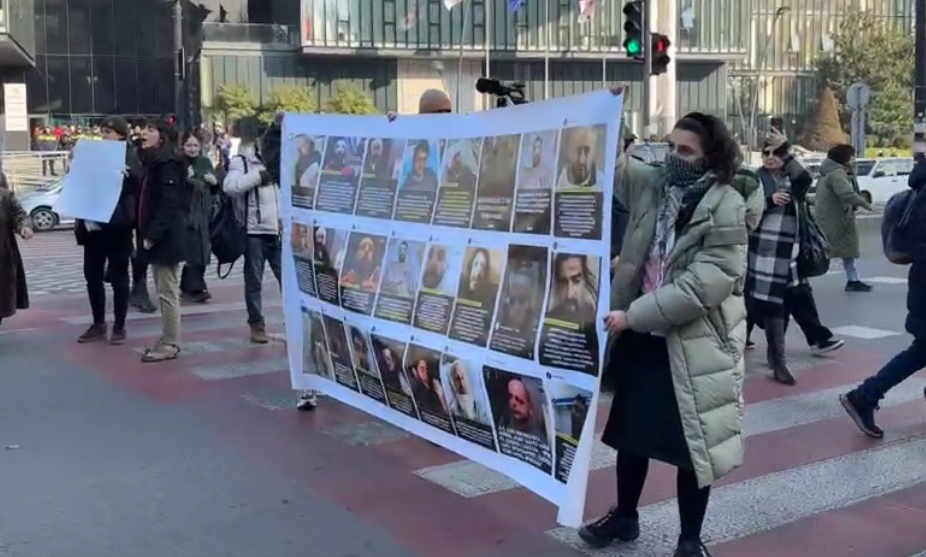 აქციის მონაწილეებმა იუსტიციის სახლიდან „ცისფერ გალერეასთან“ მსვლელობით გადაინაცვლეს