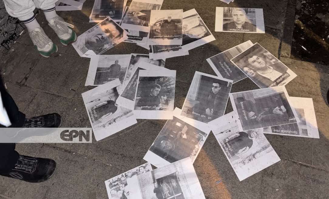 აქციის მონაწილეებმა ჭიჭინაძის ქუჩაზე პოლიციელთა ფოტოსურათები დაყარეს [ვიდეო]
