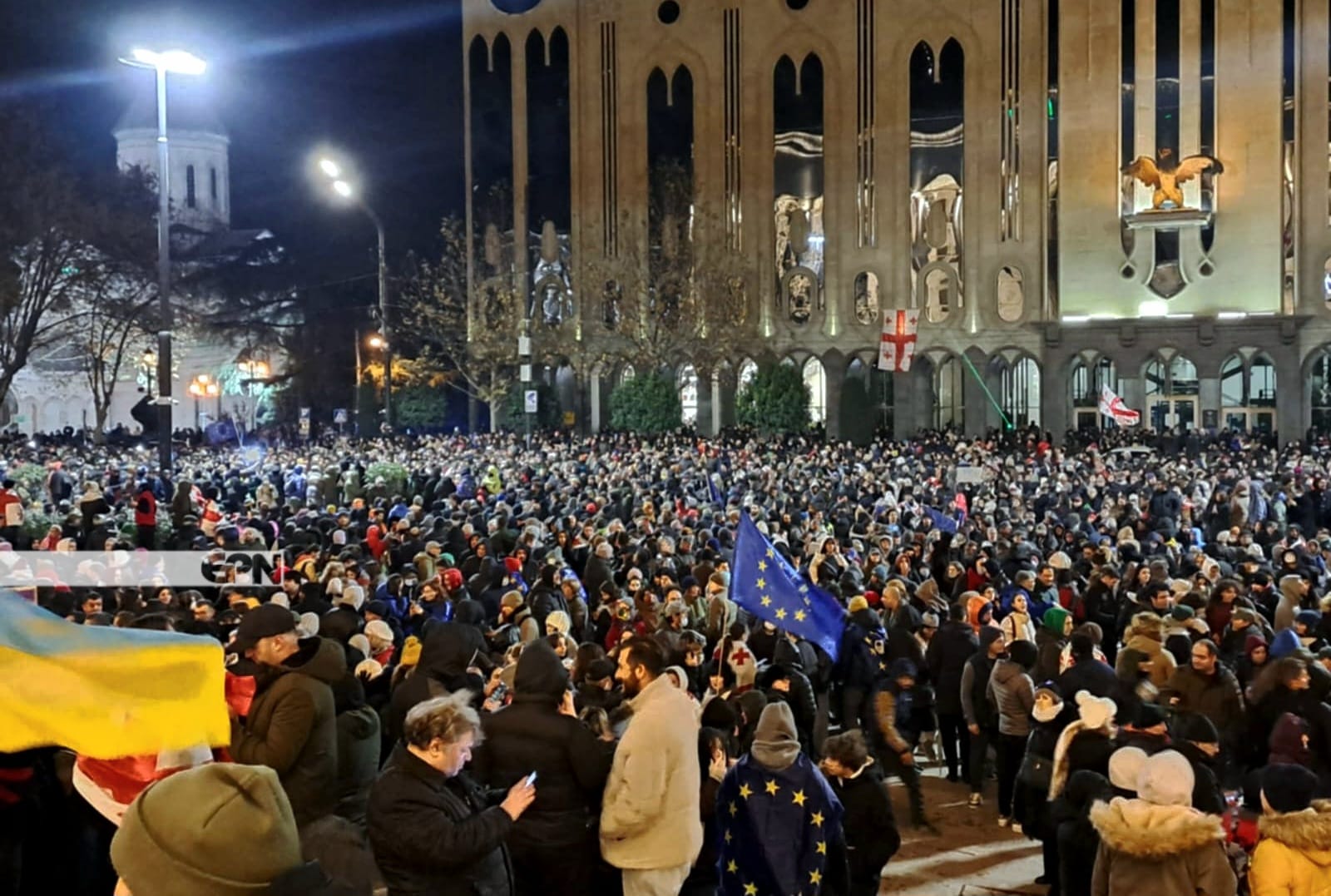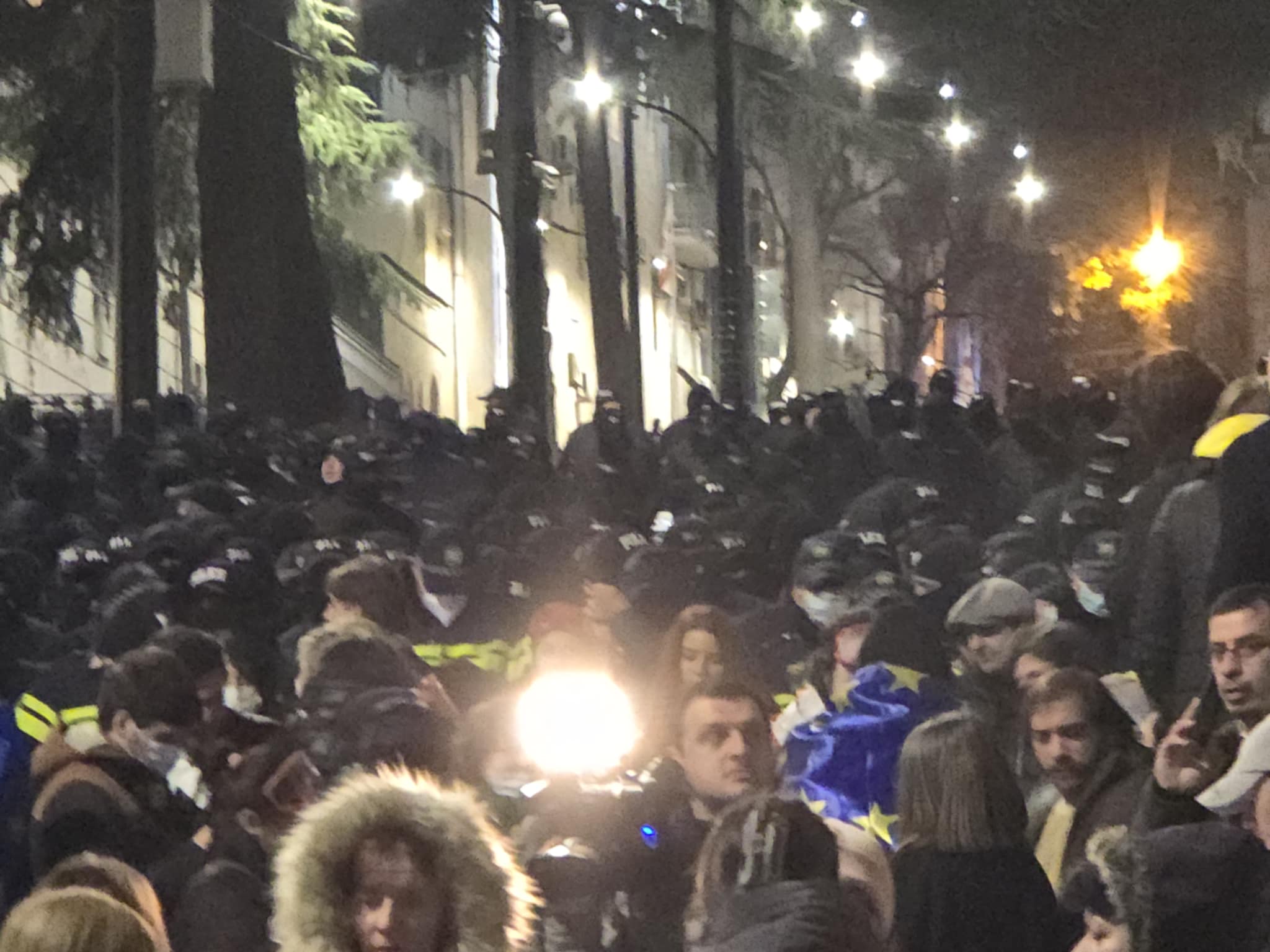რუსთაველზე კვლავ ხალხმრავალი აქციაა, პერიმეტრზე სპეცრაზმი განლაგდა - ვიდეო