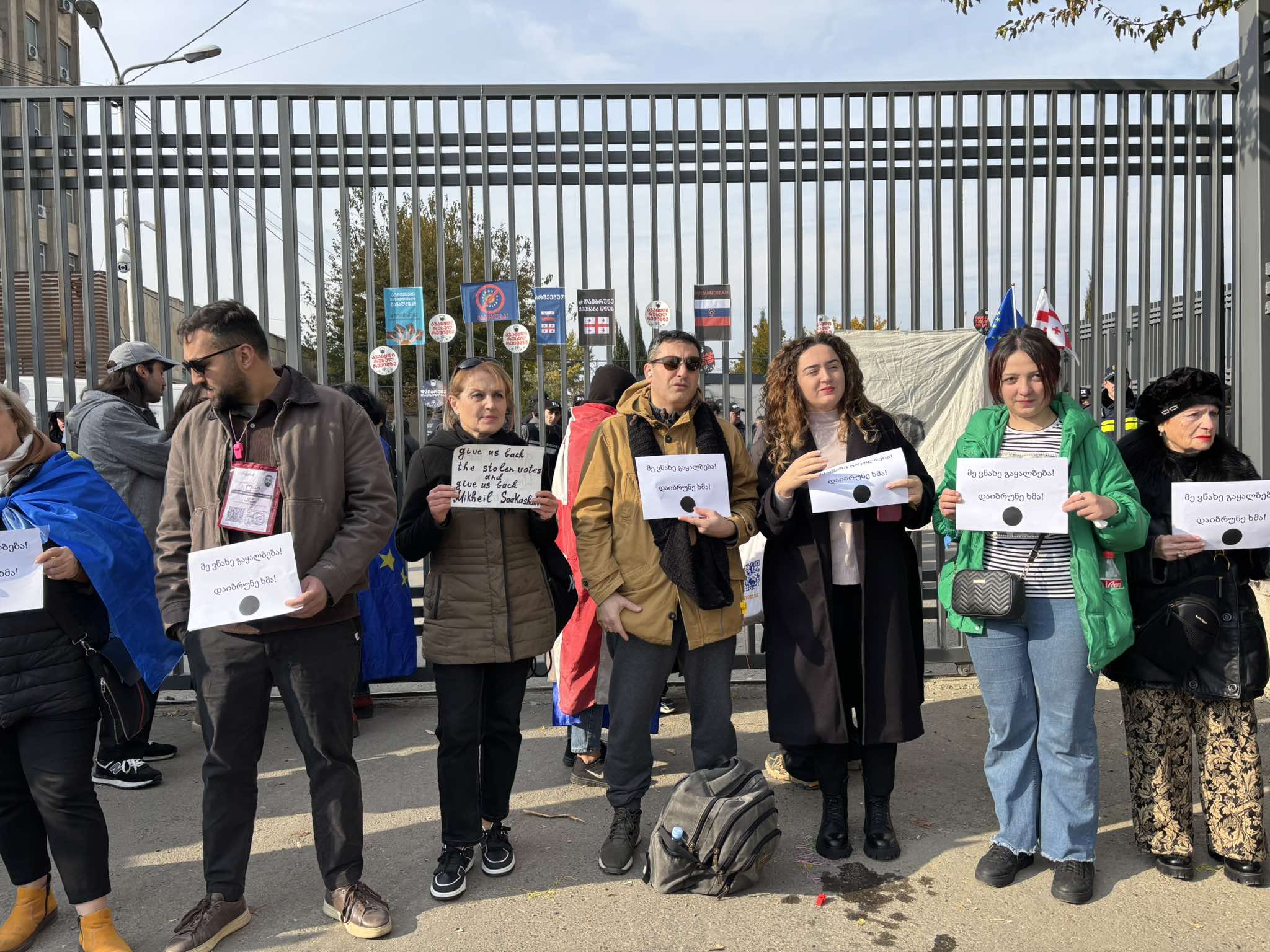 ცენტრალური საარჩევნო კომისიის შენობის მიმდებარე ტერიტორიაზე მოქალაქეები აქციას მართავენ