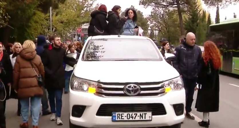 საარჩევნო ადმინისტრაციასთან შეკრებილები აღმაშენებლის ძეგლის მიმართულებით მსვლელობას მართავენ