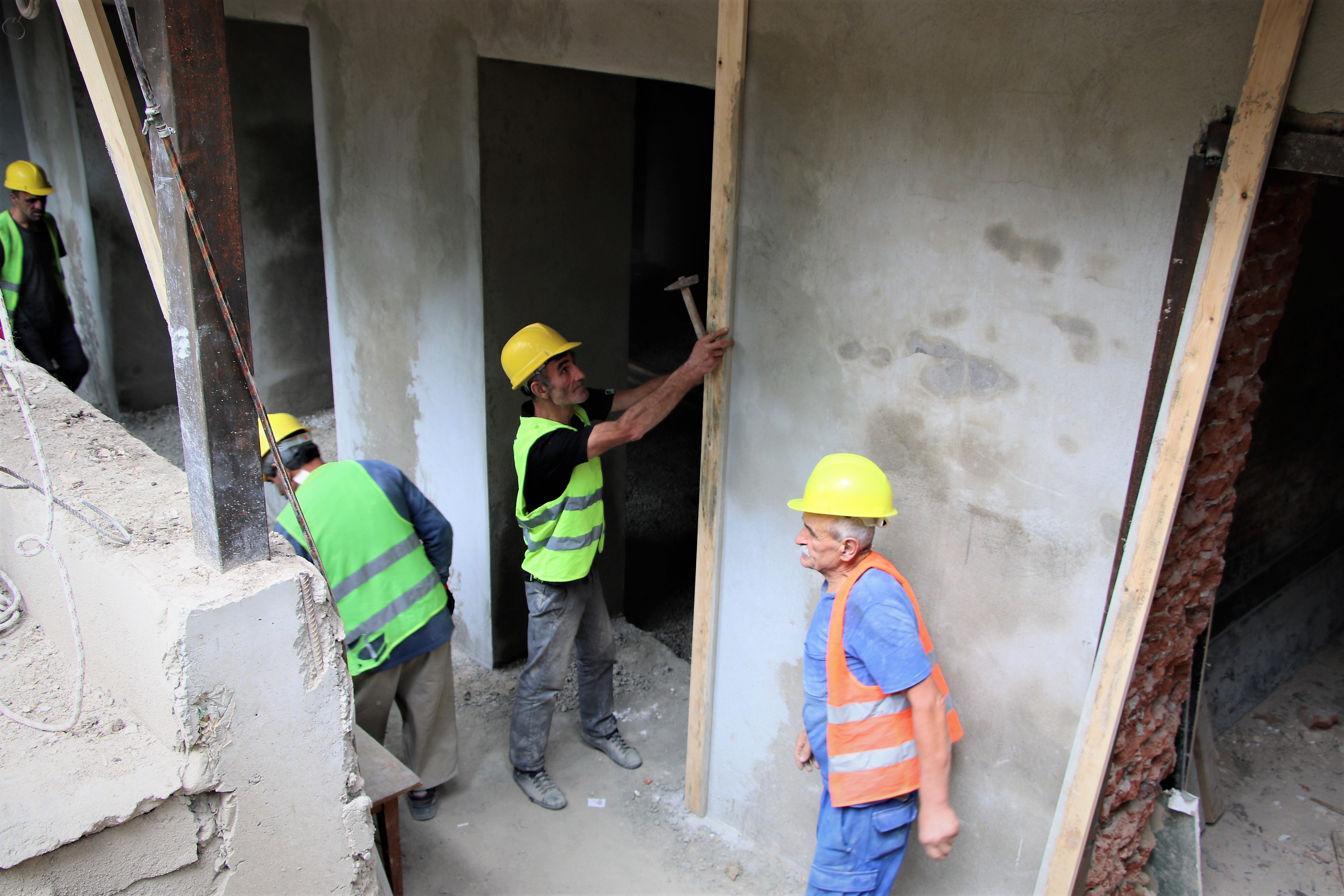 ჩუღურეთის რაიონში, ბენაშვილის N7/14-ში საცხოვრებელი სახლის გამაგრების სამუშაოები მიმდინარეობს