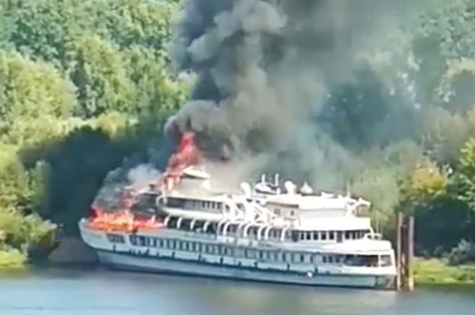 ნიჟნიგოროდის ოლქში სამგზავრო გემი „წმინდა რუსეთი“ დაიწვა - ვიდეო