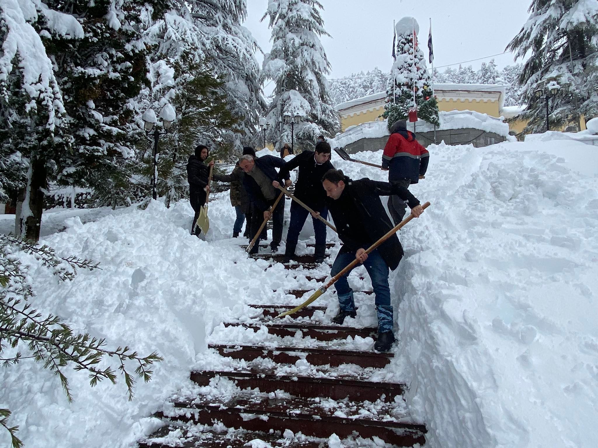 შუახევის თვითმმართველობის წარმომადგენლები თოვლის საფარისგან გაწმენდით ღონისძიებებში მონაწილეობენ