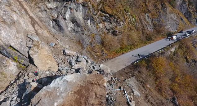 ჯვარი - მესტიის გზაზე კლდის ნაწილი ჩამოიშალა