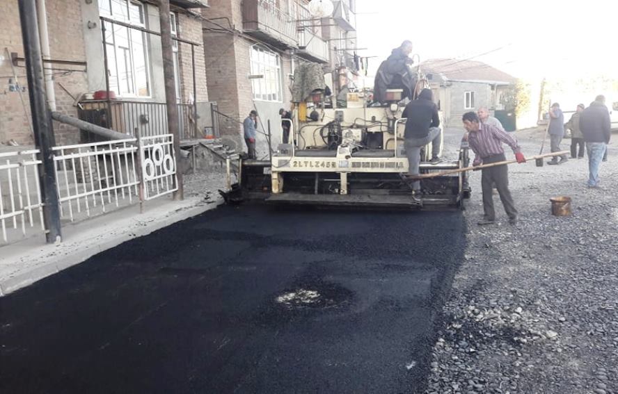 კასპში, კოსტავას ქუჩა #81 - ში მდებარე მრავალსართულიან საცხოვრებელი სახლის ეზოში კეთილმოწყობის სამუშაოები მიმდინარეობს