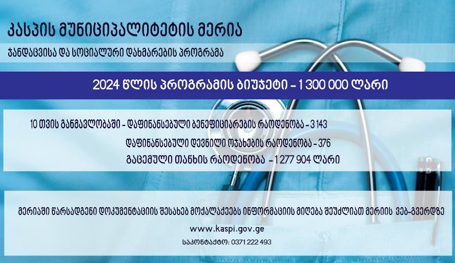 კასპის მერიის ჯანდაცვისა და სოციალური დახმარების პროგრამით 3 143-მა ბენეფიციარმა და 376-მა დევნილმა ოჯახმა ისარგებლა