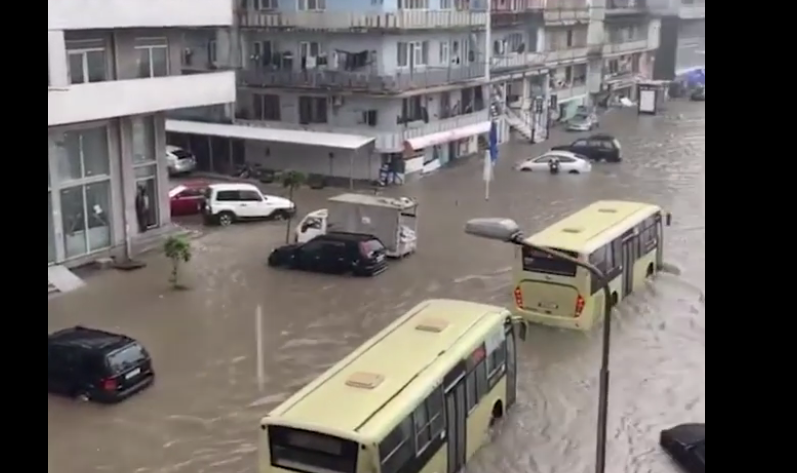 ბათუმში ძლიერი წვიმის შედეგად რამდენიმე ქუჩა დაიტბორა