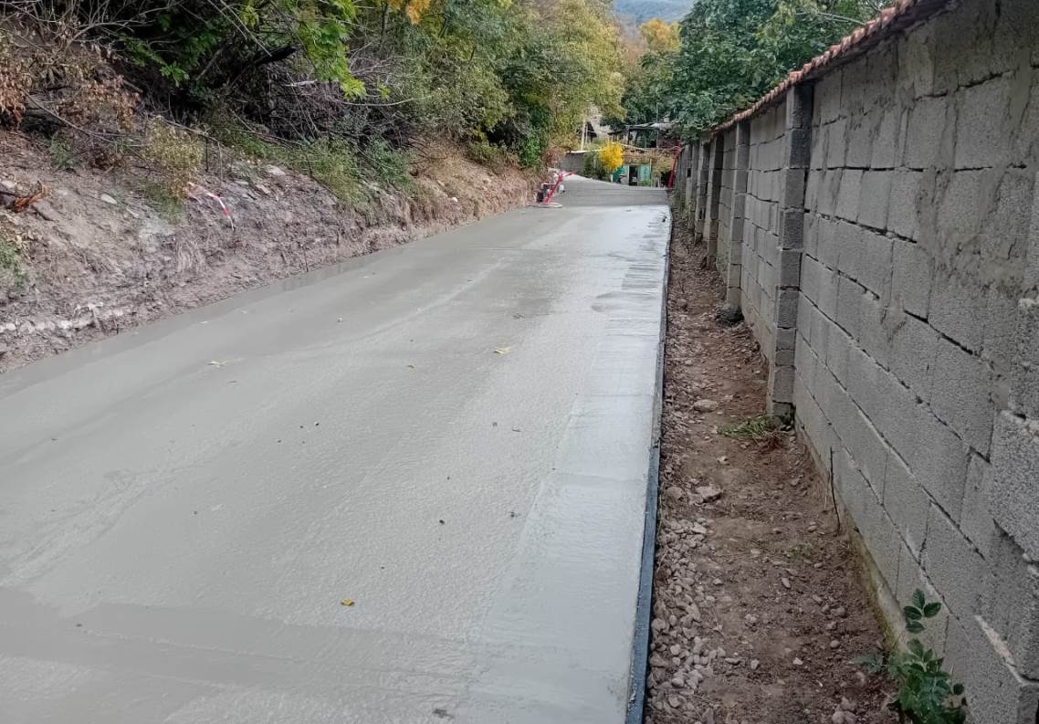 სოფელ თეძმისხევში მისასვლელ გზაზე ასფალტ/ბეტონის საფარის მოწყობა მიმდინარეობს