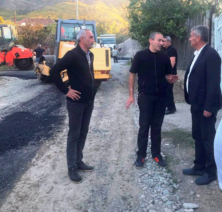 ვახტანგ მაისურაძე სოფელ ხოვლეში სკოლასთან მისასვლელ გზაზე ასფალტ-ბეტონის საფარის მოწყობის სამუშაოებს გაეცნ
