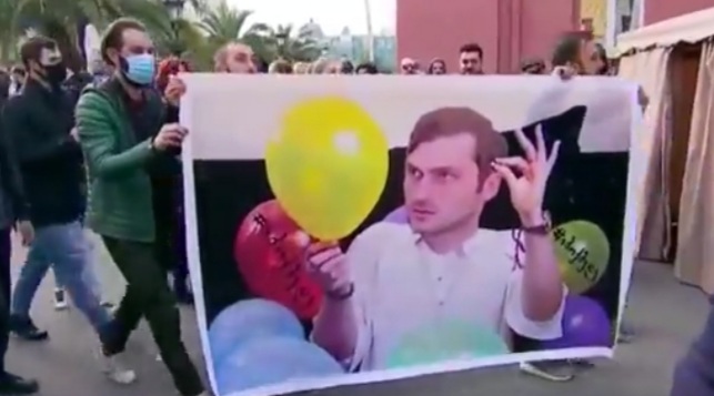 აჭარის მთავრობის სახლთან მიმდინარე აქციაზე აქტივისტებმა საპროტესტო ბანერი მიიტანეს