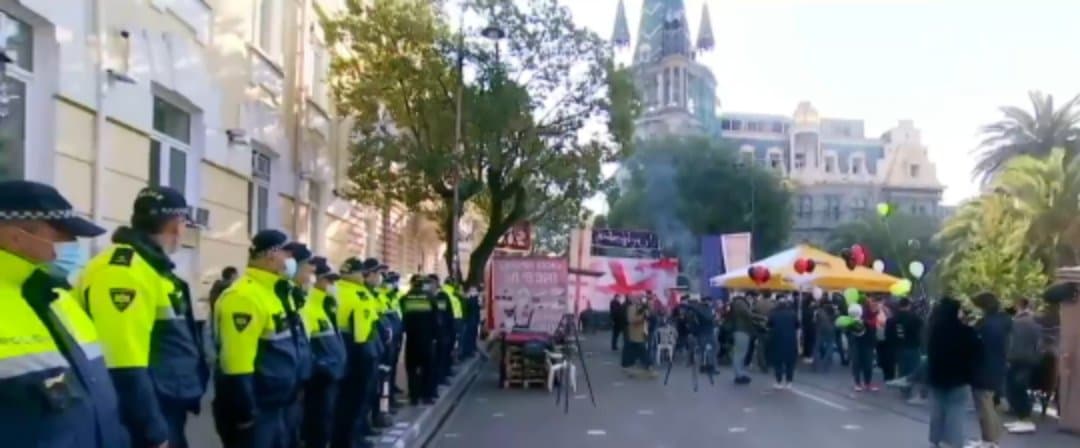 უსკო-ს შენობასთან ოპოზიციის წარმომადგენლებმა და მათმა მხარდამჭერებმა საპროტესტო აქცია გამართეს