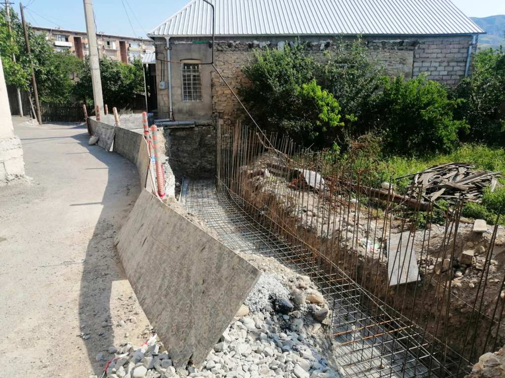 კასპში, კოსტავას ქუჩაზე რკინა-ბეტონის საყრდენი კედლის მოწყობის სამუშაო მიმდინარეობს