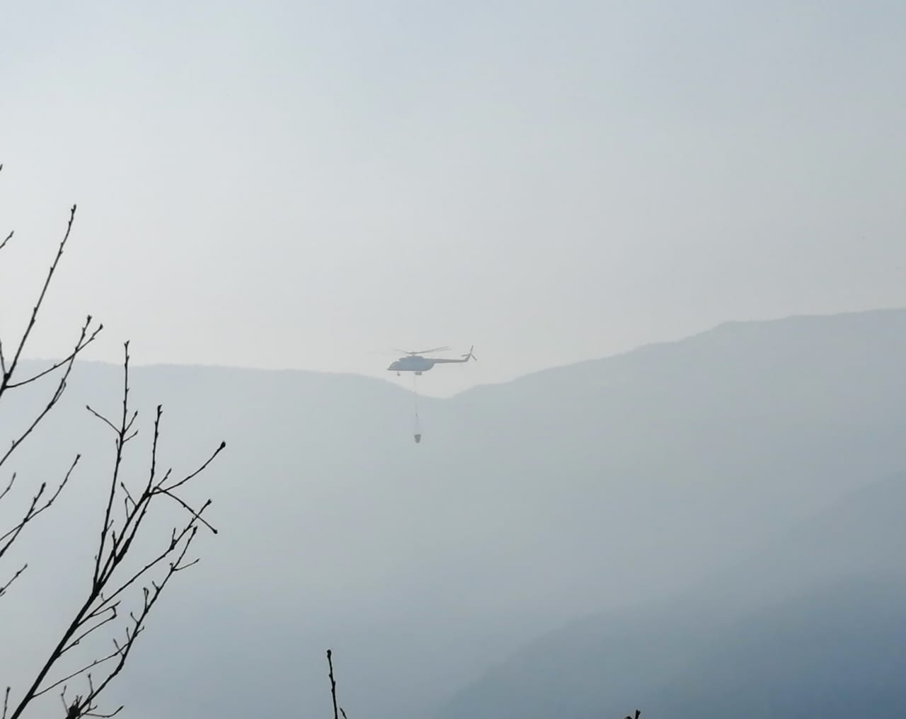 ამბროლაურში ტყის ხანძრის ქრობის სამუშაოებში ორი ვერტმფრენია ჩართული