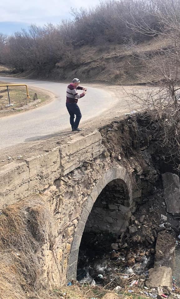 ბოლნისის მუნიციპალიტეტის სოფელ დარბაზში საავტომობილო ხიდზე საყრდენი კედლის ნაწილი ჩაინგრა
