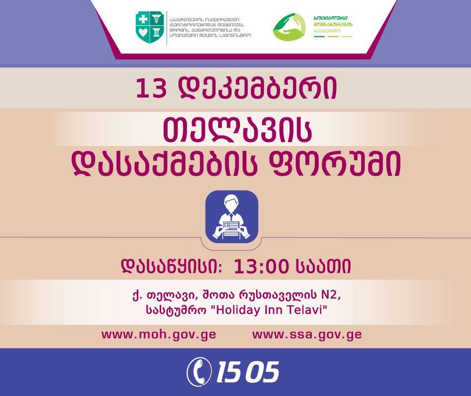 13 დეკემბერს თელავში სოციალური მომსახურების სააგენტო დასაქმების ფორუმს გამართავს