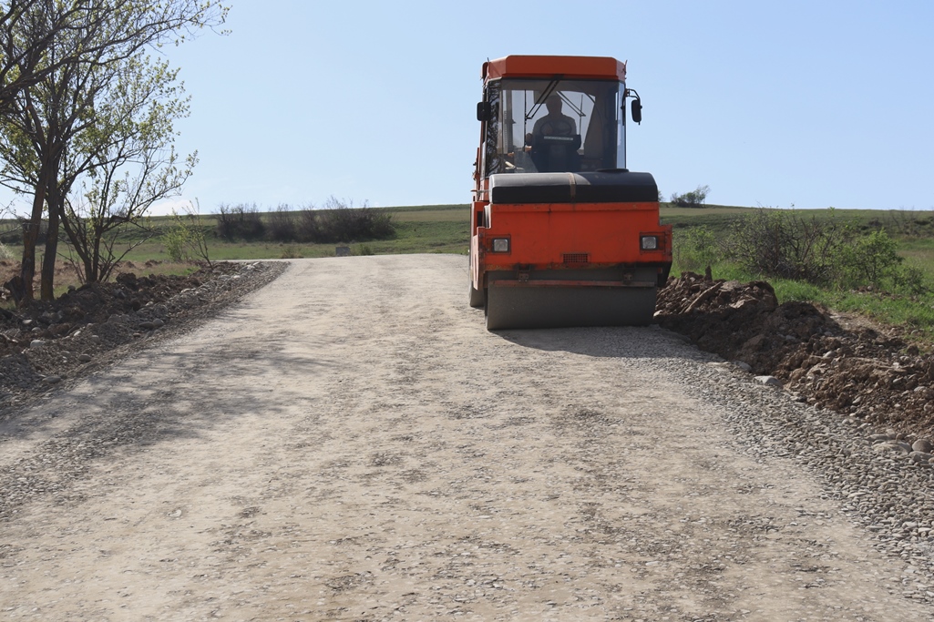 სოფელ ლავრისხევთან მისასვლელ გზაზე ასფალტის საფარის დაგება მიმდინარეობს