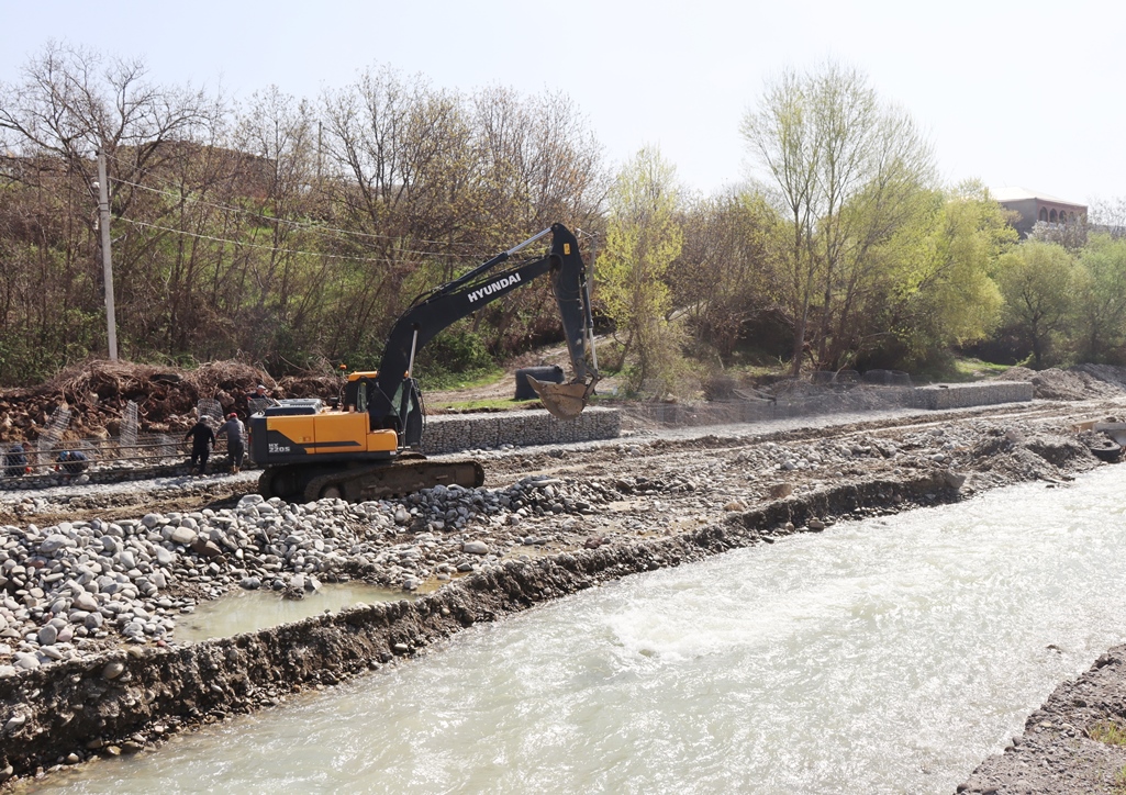 კასპში მდინარე ლეხურას მარცხენა სანაპიროზე 848 გრძივი მეტრი გაბიონის მოწყობა მიმდინარეობს