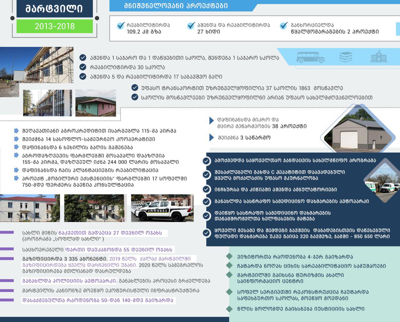 მნიშვნელოვანი პროექტები მარტვილში - 2013-2018 წლები