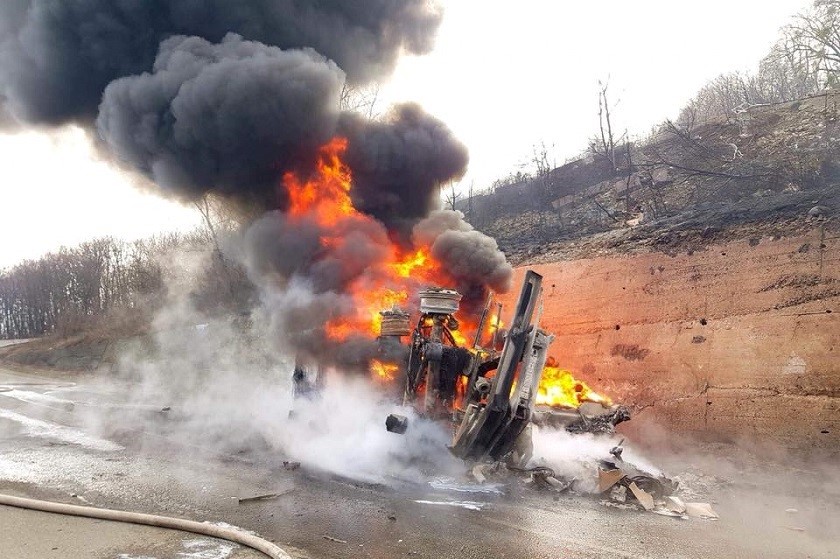 რიკოთზე ავტოცისტერნას ცეცხლი გაუჩნდა და მოძრაობა აიკრძალა