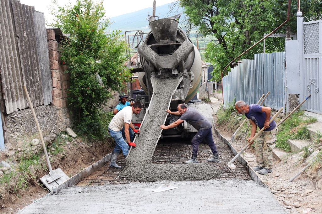 კასპის მერია - ოკამში სოფლის ეკლესიასთან მისასვლელ გზაზე ბეტონის საფარის მიწყობის სამუშაოები მიმდინარეობს