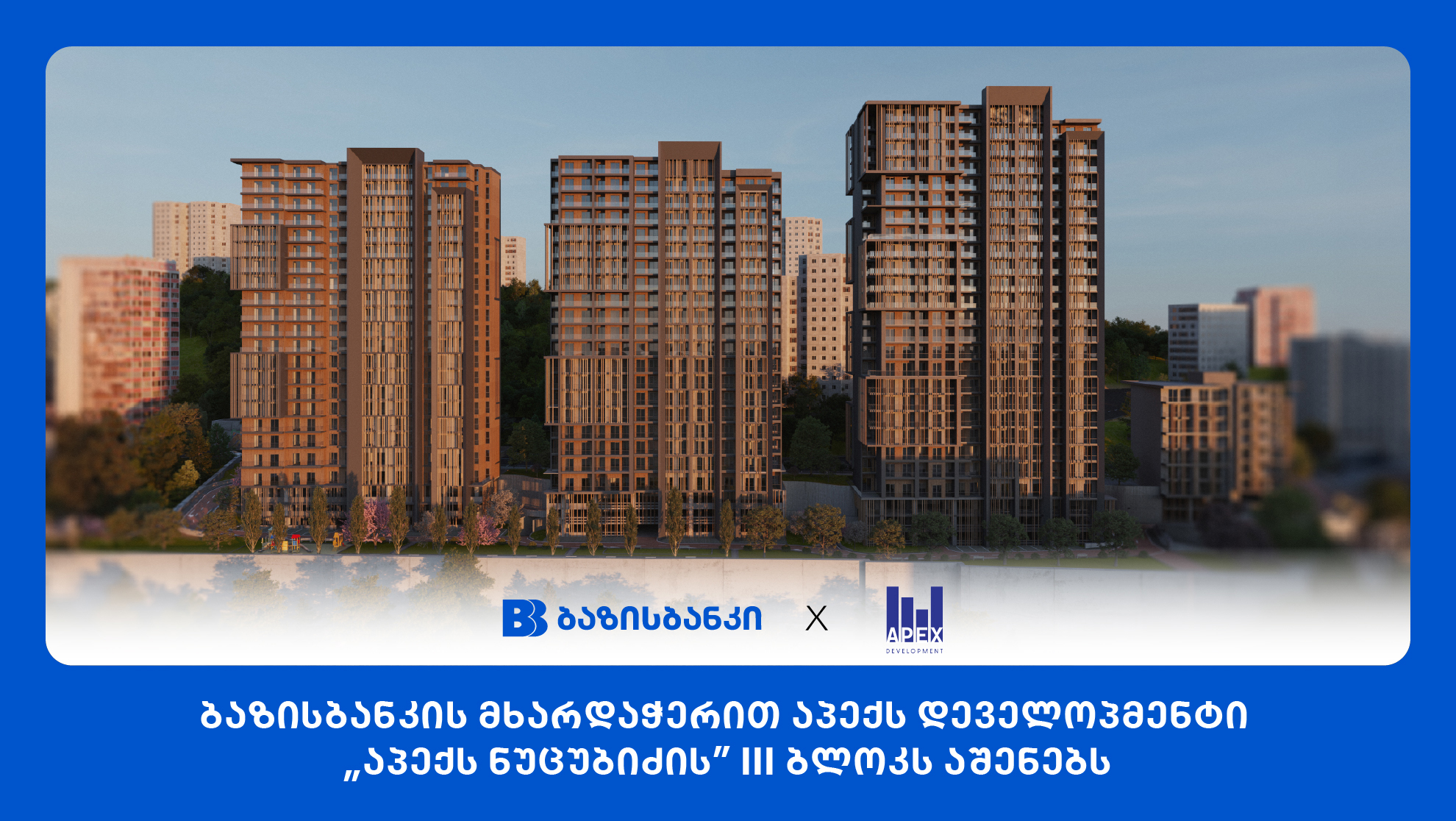 ბაზისბანკის მხარდაჭერით აპექს დეველოპმენტი „აპექს ნუცუბიძის” III ბლოკს აშენებს