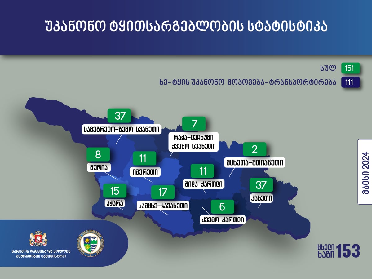 მიმდინარე წლის მაისში, უკანონო ტყითსარგებლობის 151 ფაქტი გამოვლინდა
