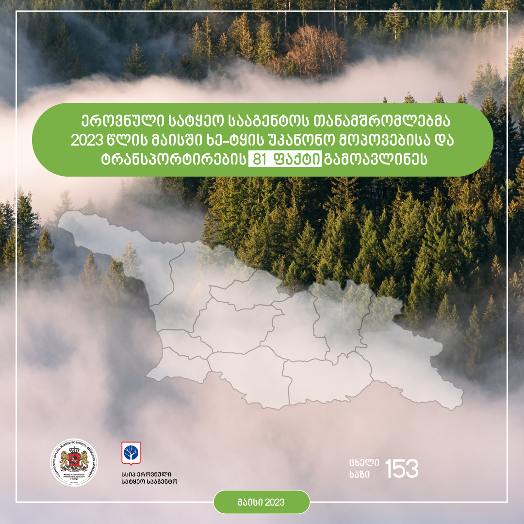 ეროვნული სატყეო სააგენტოს თანამშრომლებმა, მაისის თვეში, ხე-ტყის უკანონო მოპოვებისა და ტრანსპორტირების 81 ფაქტი გამოავლინეს