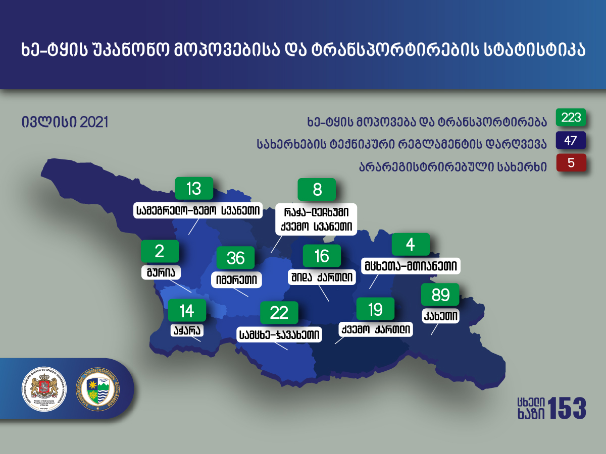 ივლისში უკანონო ტყითსარგებლობის 223 ფაქტი გამოავლინდა