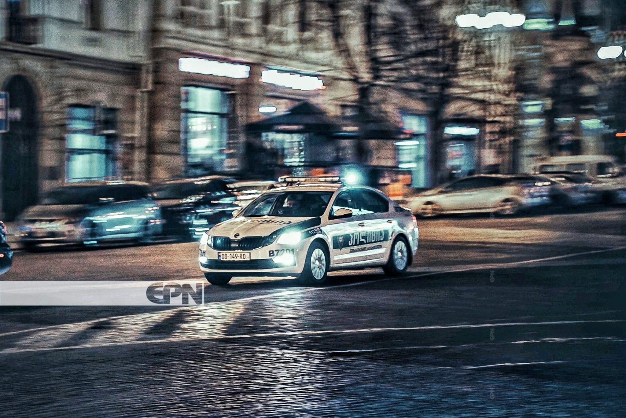 თბილისში მსუბუქი ავტომობილი საპატრულო პოლიციის მანქანას შეეჯახა