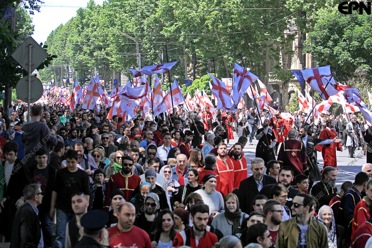 ოჯახის სიწმინდის დაცვის დღესთან დაკავშირებული მსვლელობის მონაწილეები სამებაში მივიდნენ