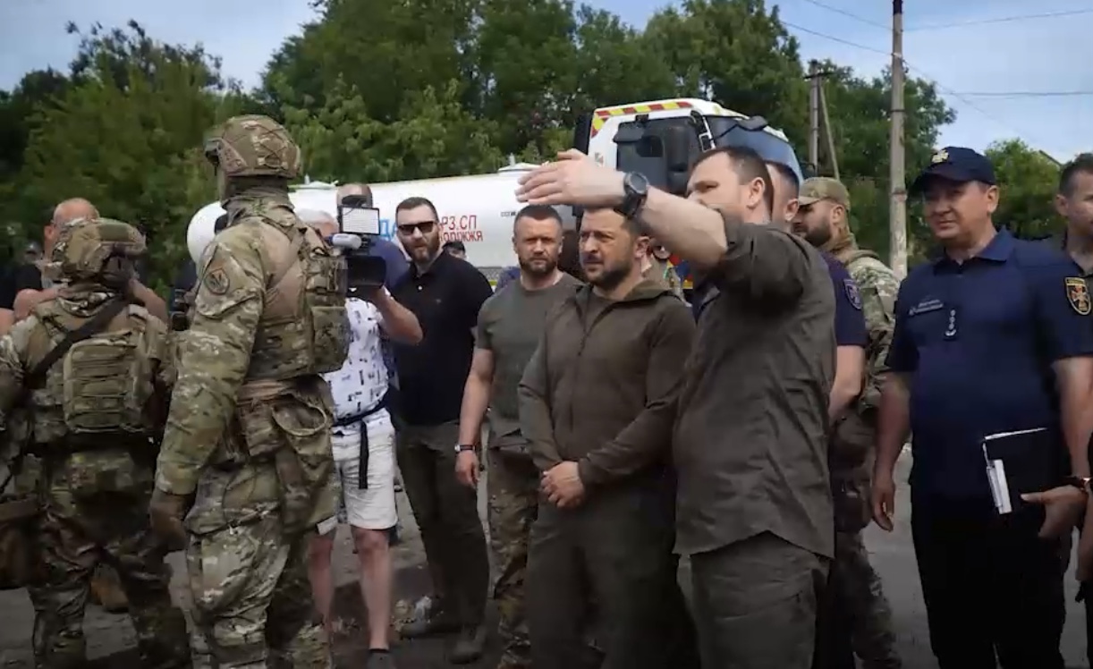 ვოლოდიმირ ზელენსკი ხერსონის რეგიონში, სტიქიის ზონაში ჩავიდა