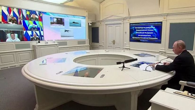 კრემლი - რუსეთის პრეზიდენტი, ვლადიმერ პუტინი რუსეთის სტრატეგიული ბირთვული ძალების წვრთნებს დააკვირდა