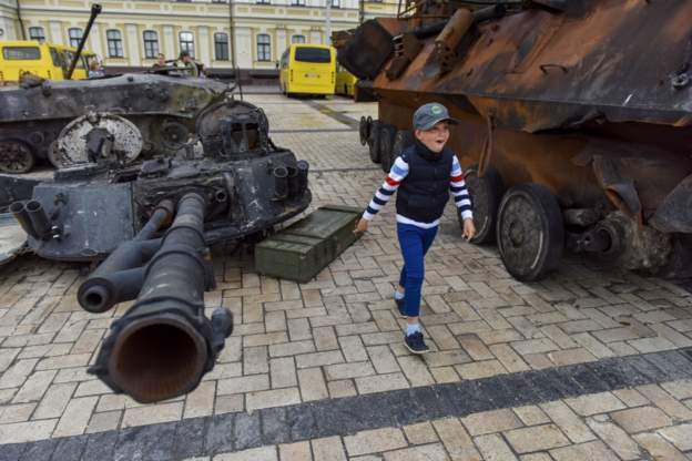 კიევში დაზიანებული რუსული ტექნიკის გამოფენა მოეწყო