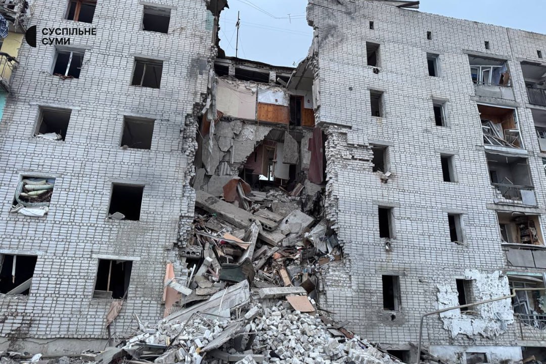 სუმის რეგიონში რუსულმა ბომბმა საცხოვრებელი კორპუსის შესასვლელი გაანადგურა