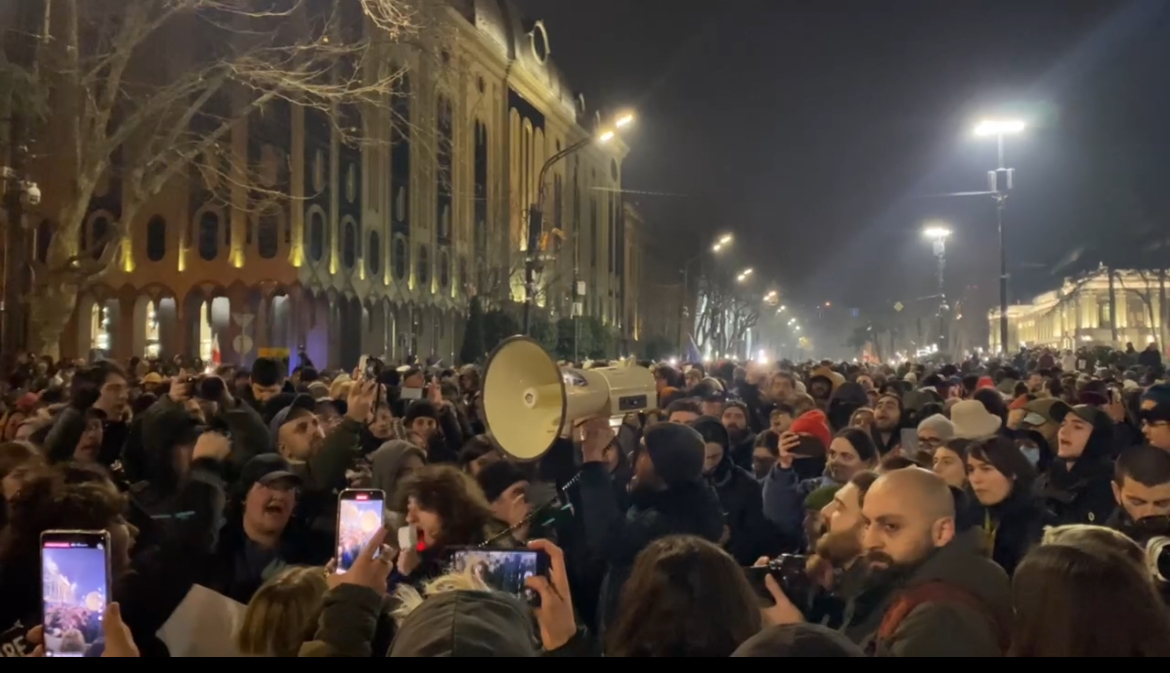 რუსთაველის გამზირზე მიმდინარე აქციას სხვადასხვა ლოკაციებზე შეკრებილი მოქალაქეები მსვლელობით შეუერთდნენ