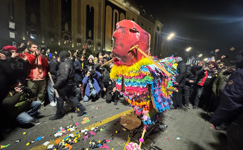 რუსთაველის გამზირზე მოქალაქეებმა ზვიად ხარაზიშვილის ფიტული მიიტანეს