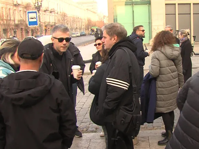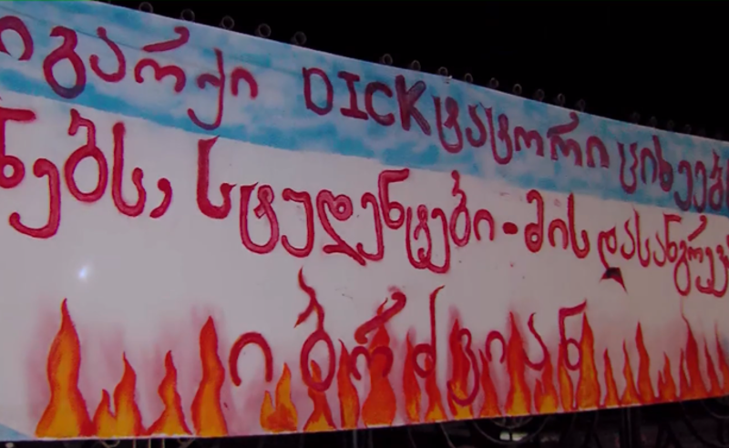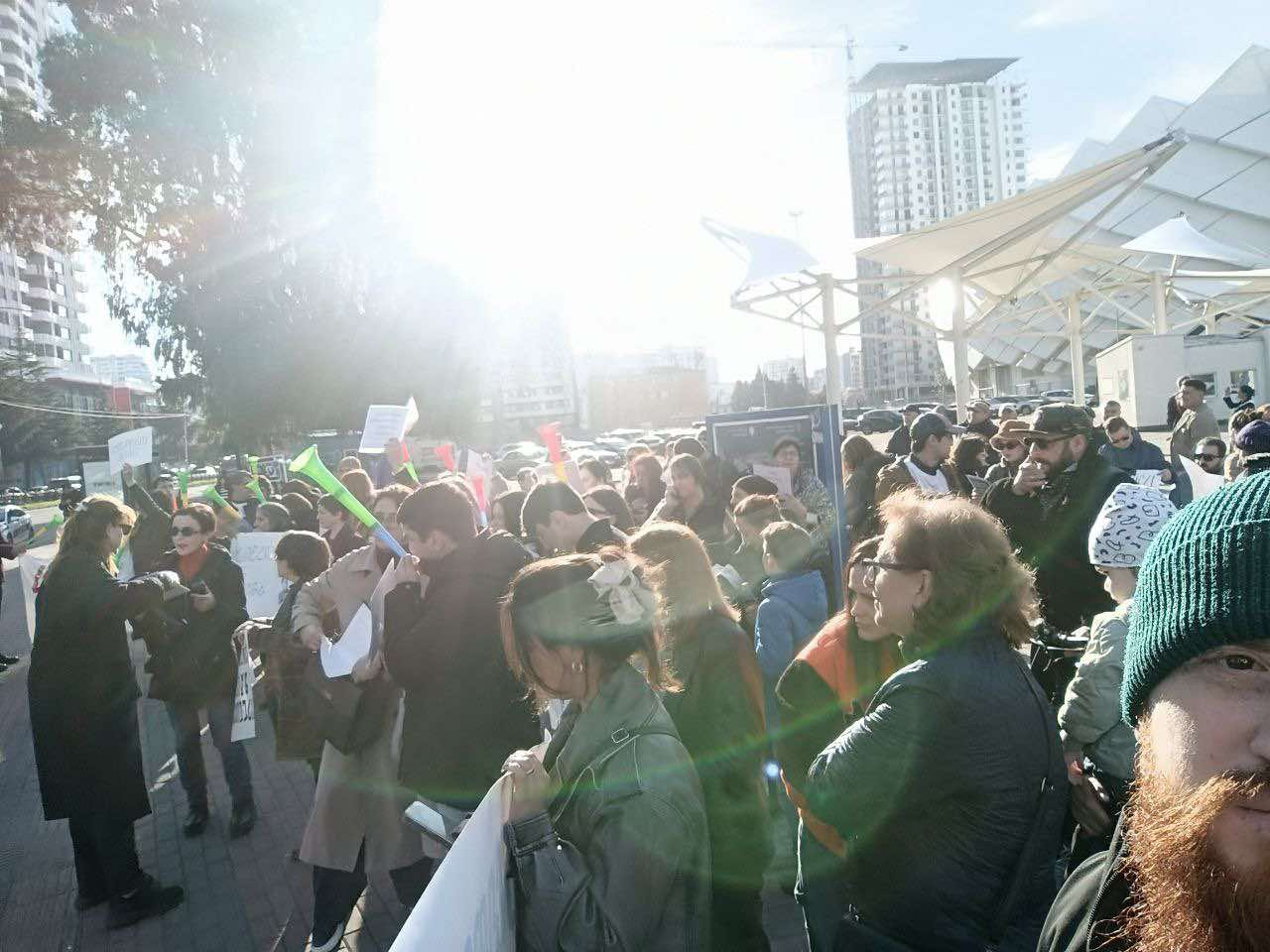 თბილისის სახელმწიფო უნივერსიტეტის პირველ კორპუსთან მოქალაქეები საპროტესტო მსვლელობისთვის ემზადებიან