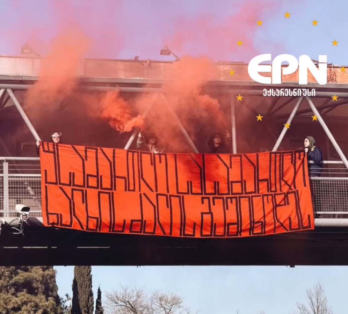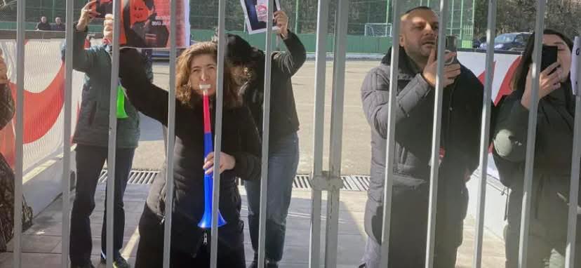 თბილისის საქალაქო სასამართლოსთან საპროტესტო ბანერი გამოფინეს