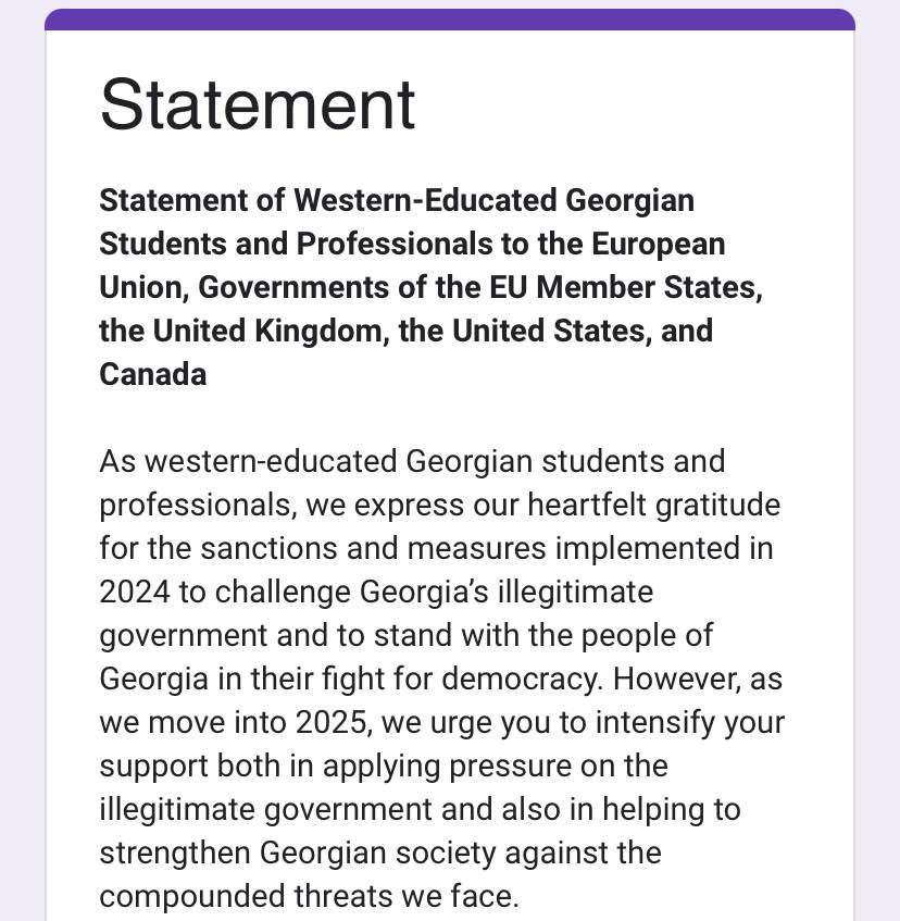 დასავლეთში განათლებამიღებული ქართველი სტუდენტები საერთაშორისო პარტნიორებს მიმართავენ