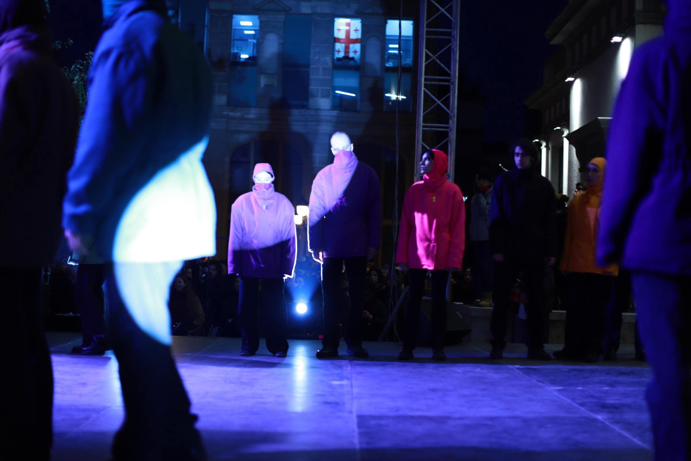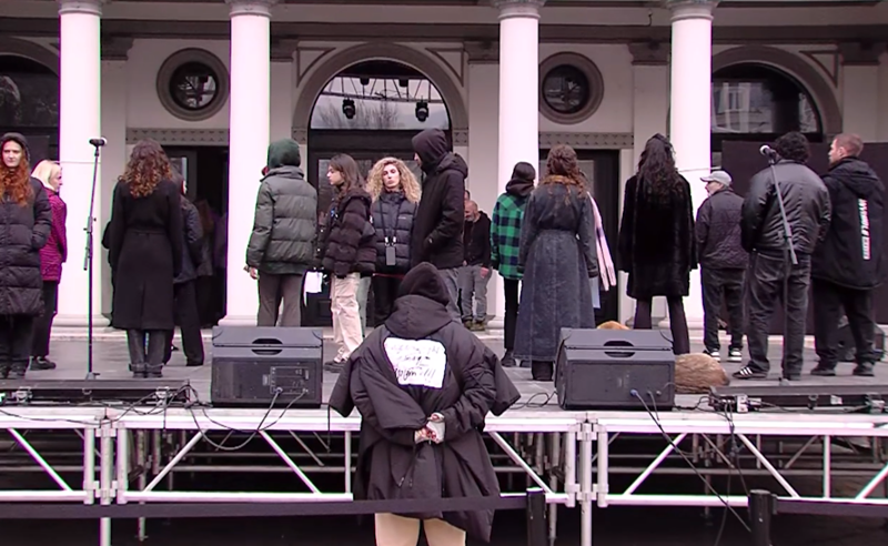 სცენა ქუჩაში, რეპეტიცია ღია ცის ქვეშ – მსახიობები საპროტესტო მანიფესტის გასაჯაროებისთვის ემზადებიან
