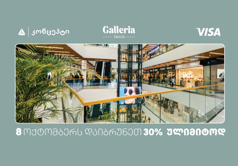 „თიბისი კონცეპტის“ მომხმარებლები გალერია თბილისში თანხის 30% ულიმიტოდ დაიბრუნებენ