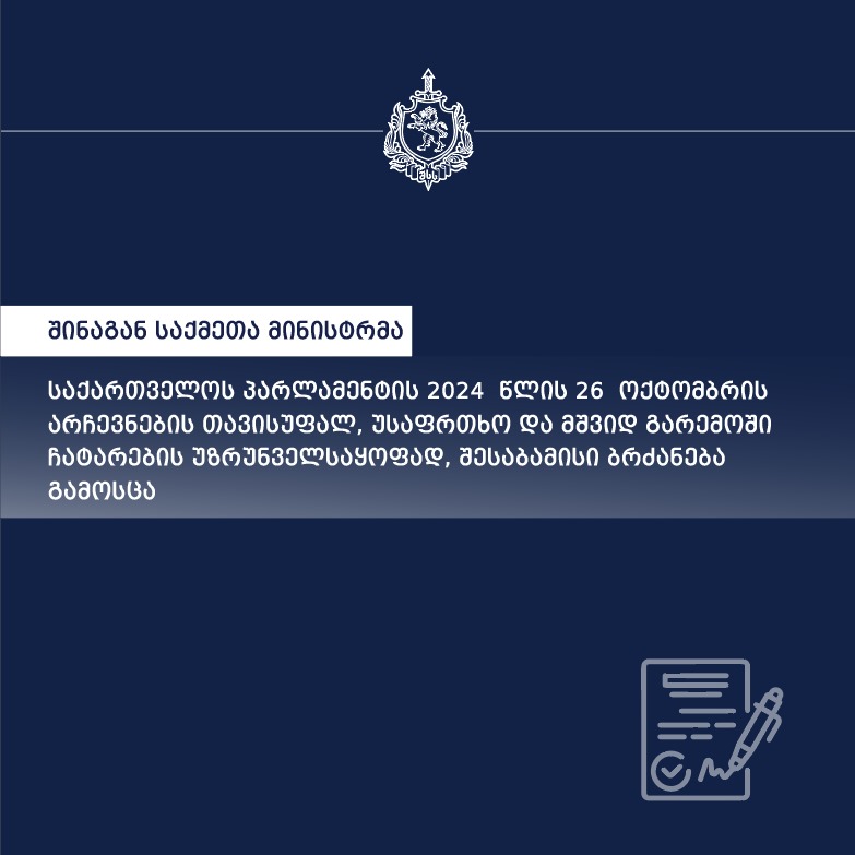 შსს - ვახტანგ გომელაურმა არჩევნების თავისუფალ, უსაფრთხო და მშვიდ გარემოში ჩატარების უზრუნველსაყოფად ბრძანება გამოსცა
