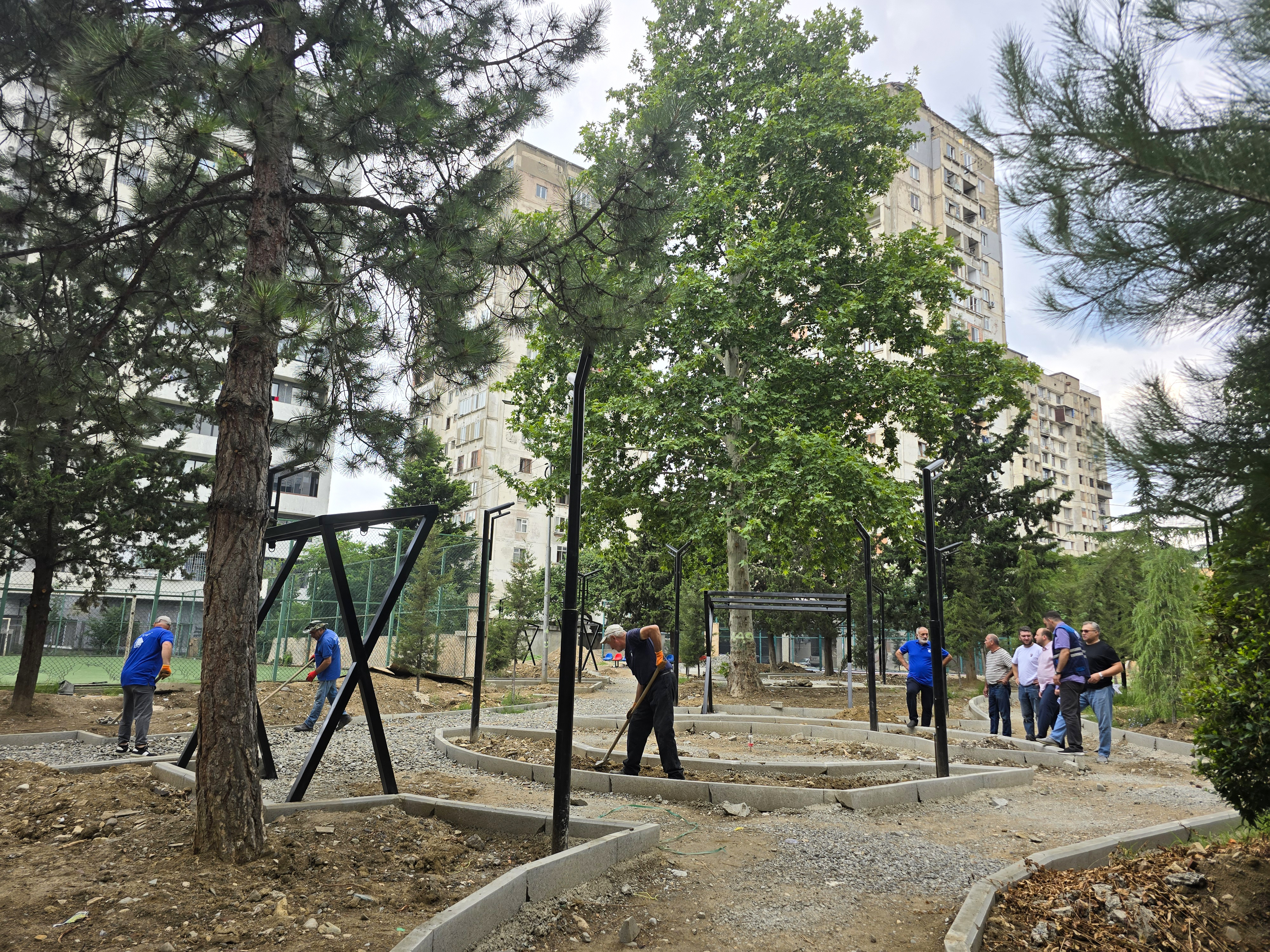 გლდანის ა მიკრორაიონში, N55-58 კორპუსებთან სკვერის მოწყობა მიმდინარეობს
